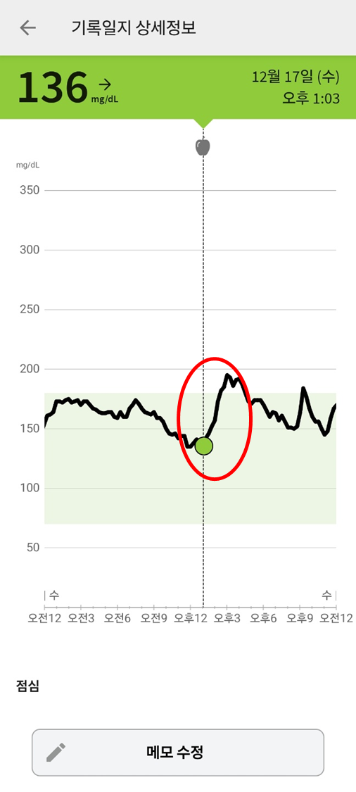 (물론 급격하게 오른 혈당을 보고 놀래서 식사 후 운동(걷기)을 통해 혈당을 떨어뜨리긴 했다.