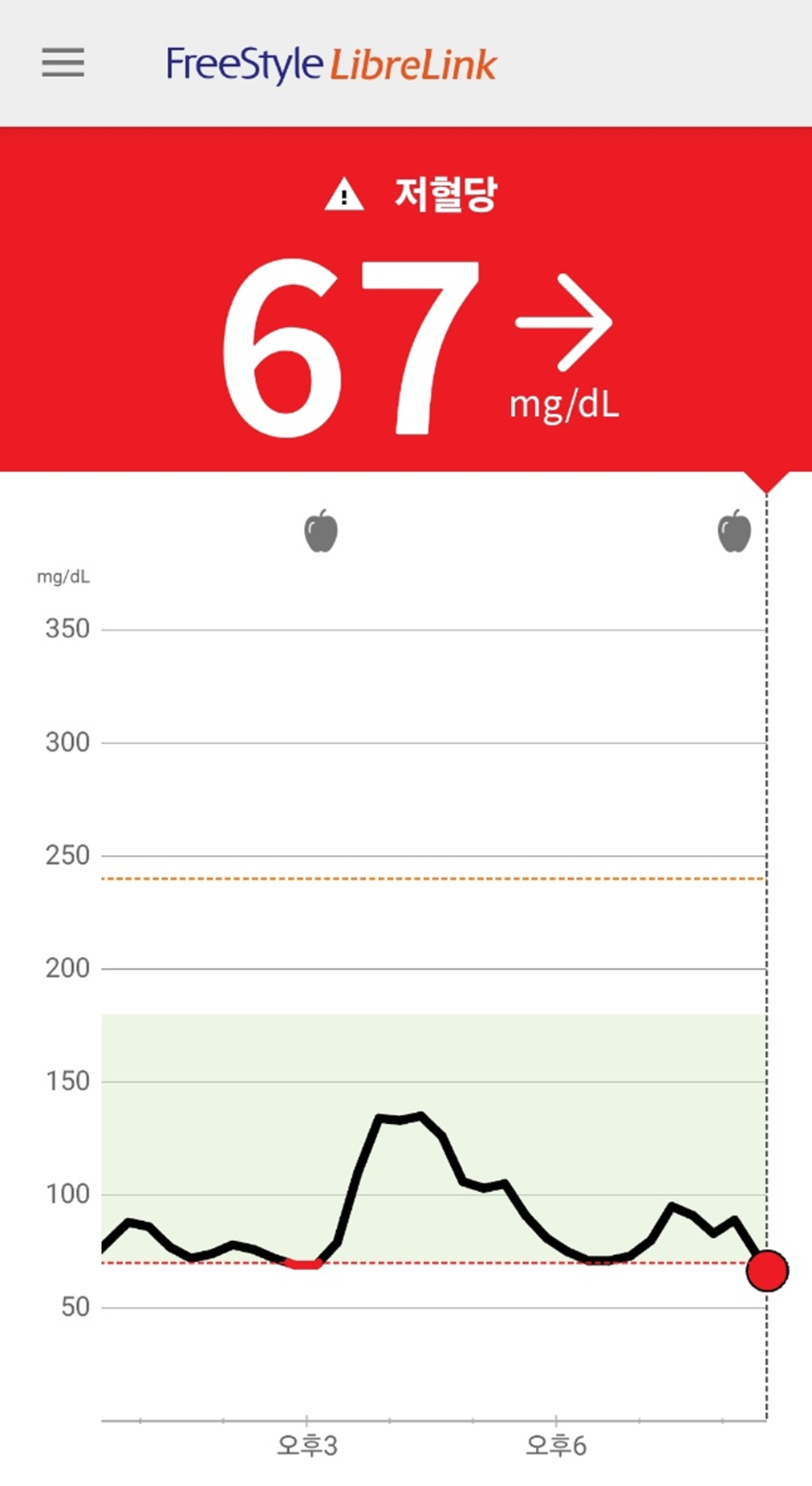 처음 저혈당 알림이 울었을 때, 난 고혈당이 온줄 알았다. 근데 뭐 먹은게 없는데? 하고 봤더니 저혈당 알림이었다.