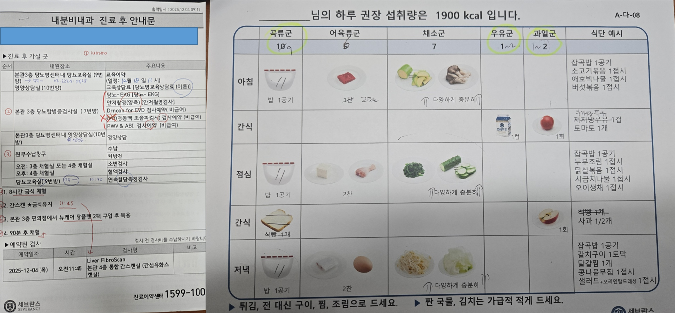 일단 2주 후 (2025년 12월 18일) 다시 방문하기로 했는데 다음에 오면 주사 놓는 법도 교육시켜준다는 것으로 보아 인슐린 주사를 맞을 가능성이 매우 높은거 같다.