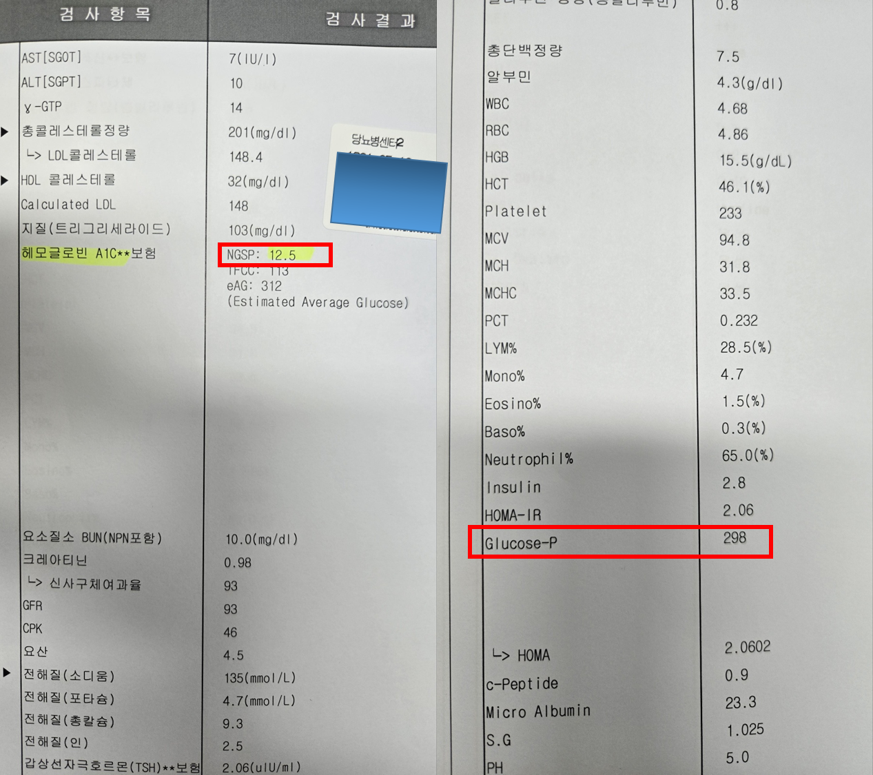 [#3] 진단 : 당화혈색소 12.5% , 공복혈당 298